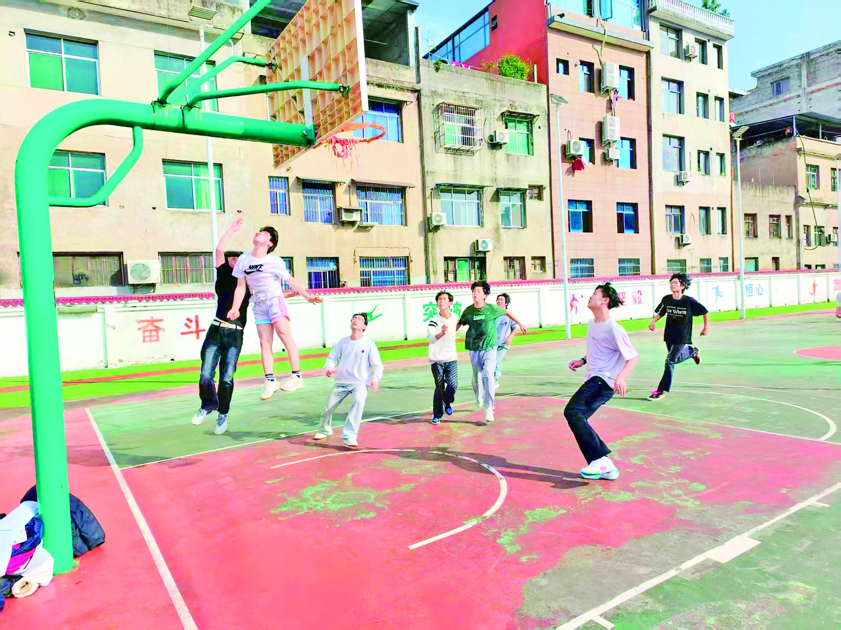 晨曦初露,操場(chǎng)已熱鬧起來(lái)。紅色的跑道上,三五個(gè)學(xué)生結(jié)伴慢跑,步伐整齊;籃球場(chǎng)上,幾個(gè)男生運(yùn)球、突破、跳投一氣呵成;羽毛球場(chǎng)地,扣殺聲、歡呼聲此起彼伏;還有跳繩的、拉伸的、踢毽子的……上午第一節(jié)課前,沒(méi)有統(tǒng)一早讀,只有奔跑跳躍的身影。