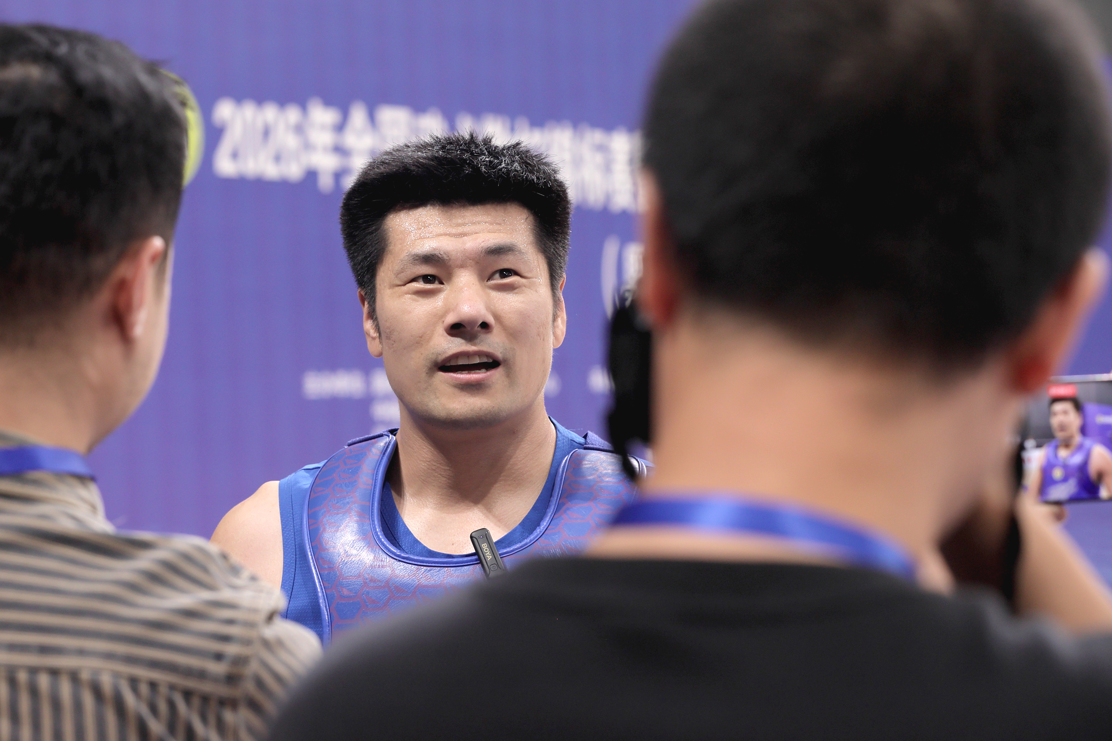 陜西代表隊運動員薛一龍在獲得男子100公斤級金牌后接受媒體采訪