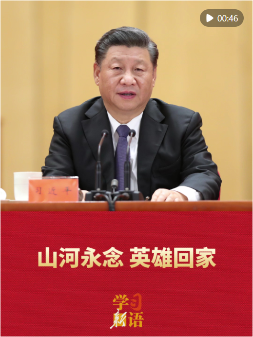 “我們始終沒有忘記在抗美援朝戰(zhàn)爭中英勇犧牲的烈士們?!?月22日,第十三批在韓中國人民志愿軍烈士遺骸回國。讓我們重溫習(xí)近平總書記飽含深情的話語,銘記歷史,緬懷英烈。
