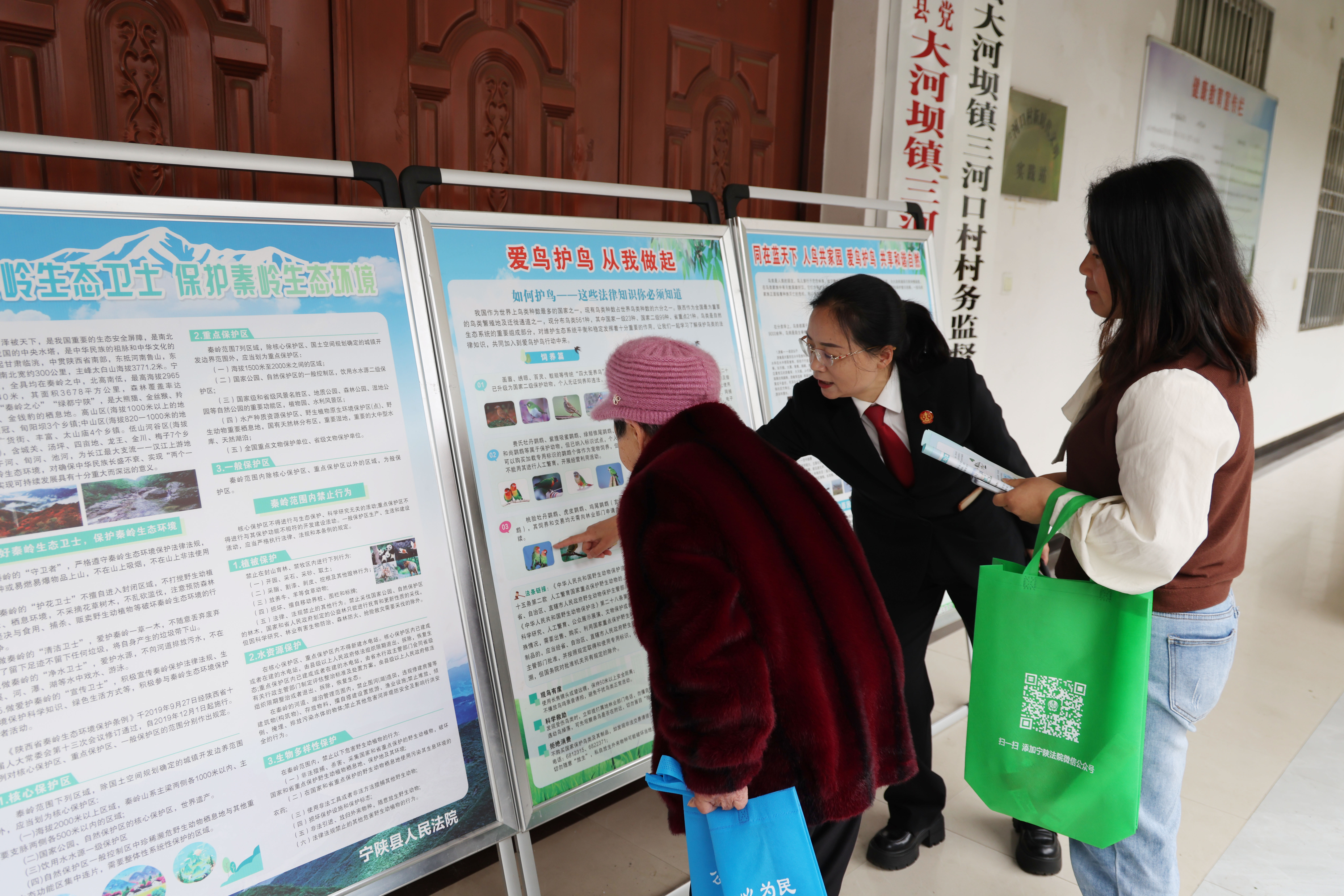 在佛坪縣大河壩鎮(zhèn)三河口村,兩地法院干警結(jié)合轄區(qū)群眾生產(chǎn)生活實際,用通俗易懂的語言,面向群眾精準解讀《中華人民共和國生態(tài)環(huán)境法典》《陜西省秦嶺生態(tài)環(huán)境保護條例》等核心法律法規(guī)。同時,聚焦非法捕撈水產(chǎn)品、違規(guī)穿越秦嶺核心保護區(qū)、破壞水源地環(huán)境等頻發(fā)違法情形,依托本地典型案例,深入淺出剖析各類生態(tài)環(huán)境違法行為的法律責(zé)任與生態(tài)危害,以“身邊案例”警醒“身邊群眾”,清晰劃定秦嶺生態(tài)保護法律紅線,引導(dǎo)群眾自覺遵守環(huán)保法律法規(guī),主動抵制各類破壞秦嶺生態(tài)的違法違規(guī)行為。活動中,同步設(shè)置趣味環(huán)保知識有獎問答環(huán)節(jié)。群眾踴躍舉手、積極互動,在輕松鮮活的氛圍中加深生態(tài)保護知識記憶,進一步夯實全民共同守護秦嶺、保護水源地的思想根基,切實提升群眾生態(tài)保護意識、法治觀念和行動自覺。