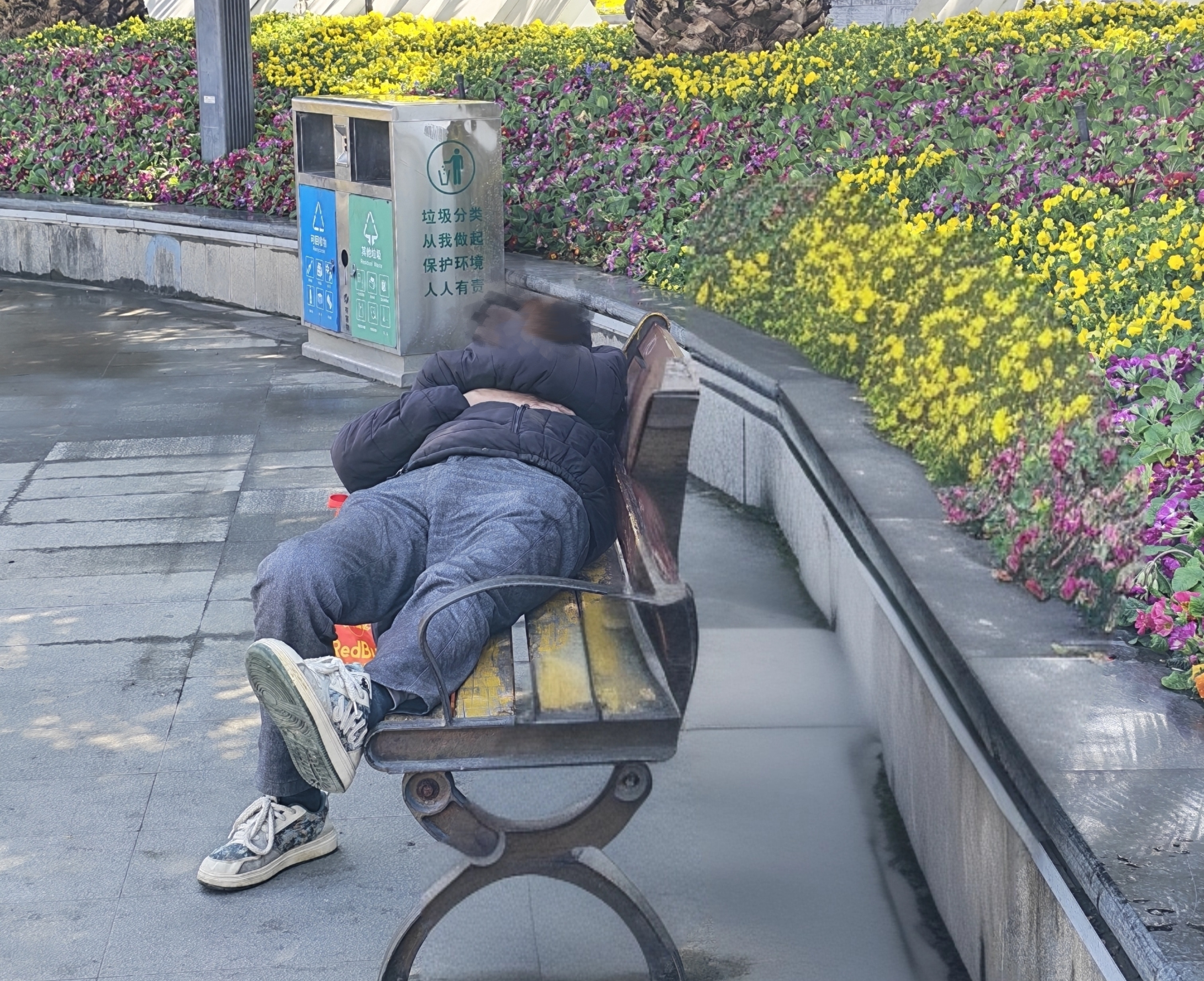 春日時光,陽光明媚,是廣大市民走出戶外,沐浴陽光的好時節(jié)。然而,筆者近期在安康城區(qū)部分廣場、公園看到,有市民在臺階、座椅上不顧形象地倒頭大睡,很大程度破壞了安康城市的文明形象。希望廣大市民自覺遵守《安康市文明行為促進條例》,管束好自己的一言一行,不要在公共場所隨意躺臥,共同維護安康優(yōu)美的環(huán)境和良好的形象。賴家斌 攝