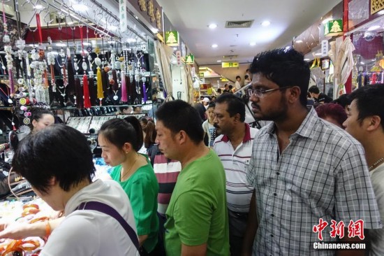 9月15日,幾位來(lái)自斯里蘭卡的游客慕名前來(lái)天意選購(gòu)商品。當(dāng)日,自1992年開(kāi)業(yè)至今的北京天意市場(chǎng)迎來(lái)其在北京西城阜外大街營(yíng)業(yè)的最后一日,商家趁機(jī)“瘋狂甩貨”,大批北京民眾也紛至沓來(lái)。這里曾是北京著名的小商品商城,聚集了數(shù)千家商戶。為疏解北京非首都功能,天意商城將于本月16日關(guān)門(mén)停業(yè)。中新社記者 崔楠 攝
