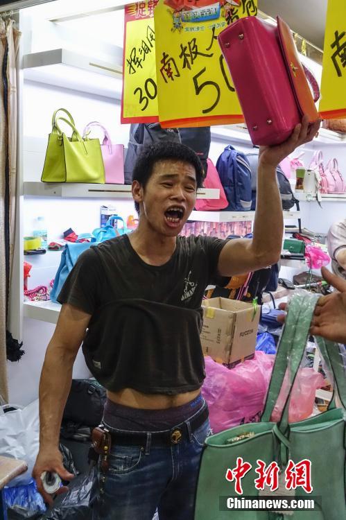 9月15日,一商家舉起商品大聲叫賣(mài)。當(dāng)日,自1992年開(kāi)業(yè)至今的北京天意市場(chǎng)迎來(lái)其在北京西城阜外大街營(yíng)業(yè)的最后一日,商家趁機(jī)“瘋狂甩貨”,大批北京民眾也紛至沓來(lái)。這里曾是北京著名的小商品商城,聚集了數(shù)千家商戶。為疏解北京非首都功能,天意商城將于本月16日關(guān)門(mén)停業(yè)。中新社記者 崔楠 攝