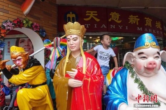 9月15日,一孩童坐在天意門(mén)前西游記師徒雕像上遠(yuǎn)眺。當(dāng)日,自1992年開(kāi)業(yè)至今的北京天意市場(chǎng)迎來(lái)其在北京西城阜外大街營(yíng)業(yè)的最后一日,商家趁機(jī)“瘋狂甩貨”,大批北京民眾也紛至沓來(lái)。這里曾是北京著名的小商品商城,聚集了數(shù)千家商戶。為疏解北京非首都功能,天意商城將于本月16日關(guān)門(mén)停業(yè)。中新社記者 崔楠 攝