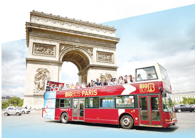 | 在法國(guó)巴黎,一輛觀光巴士經(jīng)過凱旋門。 |