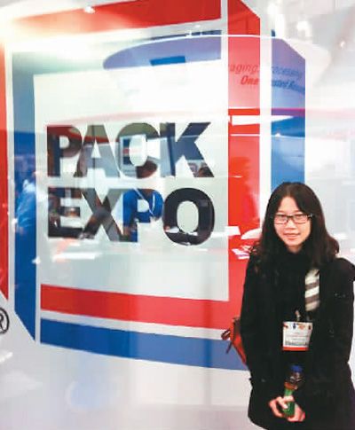 圖為李穎留學(xué)時(shí)參加美國(guó)最大的包裝展時(shí)的留影。