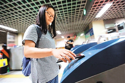 | 隨著中國(guó)在移動(dòng)互聯(lián)網(wǎng)領(lǐng)域的技術(shù)進(jìn)步與應(yīng)用普及,基于手機(jī)的支付方式正在走進(jìn)生活的每個(gè)角落。圖為一位北京市民通過刷手機(jī)直接進(jìn)站乘坐地鐵。 |