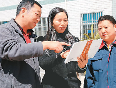 | 圖為魯紹琴和員工在討論問(wèn)題。 |