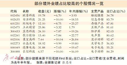 另外,安潔科技、環(huán)旭電子、歌爾股份、藍(lán)思科技和水晶光電等也都是蘋果概念的明星股。其中,藍(lán)思科技2017年上半年外銷收入為71.05億元,占主營業(yè)務(wù)收入比重為82.03%。安潔科技同期外銷營收占比為83.79%。環(huán)旭電子為87.81%。水晶光電的出口營收占比也達(dá)到56.83%。
