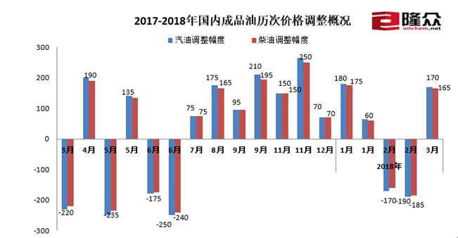 人民網(wǎng)北京3月28日電 (朱江)今日,記者從隆眾、卓創(chuàng)社會監(jiān)測機(jī)構(gòu)獲悉,3月29日零時將上調(diào)汽柴油限價,每噸汽油上調(diào)170、柴油上調(diào)165元,折合每升89#0.13、92#0.13、95#0.14、0#0.14元。隆眾原油分析師李彥表示,本次調(diào)價是今年第三次上調(diào),本次調(diào)價過后,2018年成品油調(diào)價將呈現(xiàn)“三漲兩跌一擱淺”的格局。