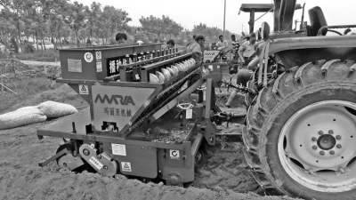 “這一播種機(jī),是由山東農(nóng)業(yè)大學(xué)和瑪麗亞機(jī)械農(nóng)機(jī)等企業(yè)歷時(shí)5年聯(lián)合研制的。通過田間播種效果看,基本上正芽率都在90%以上,非常符合我們山東對大蒜種植農(nóng)藝的要求。”韓永平說,“使用智能大蒜精量播種機(jī)每天可播種大蒜50多畝,相當(dāng)于200多個人的工作量,打破了傳統(tǒng)大蒜播種不能直立、種植效率低的局面,為大蒜機(jī)械化、規(guī);(biāo)準(zhǔn)化種植奠定了堅(jiān)實(shí)的基礎(chǔ)!
