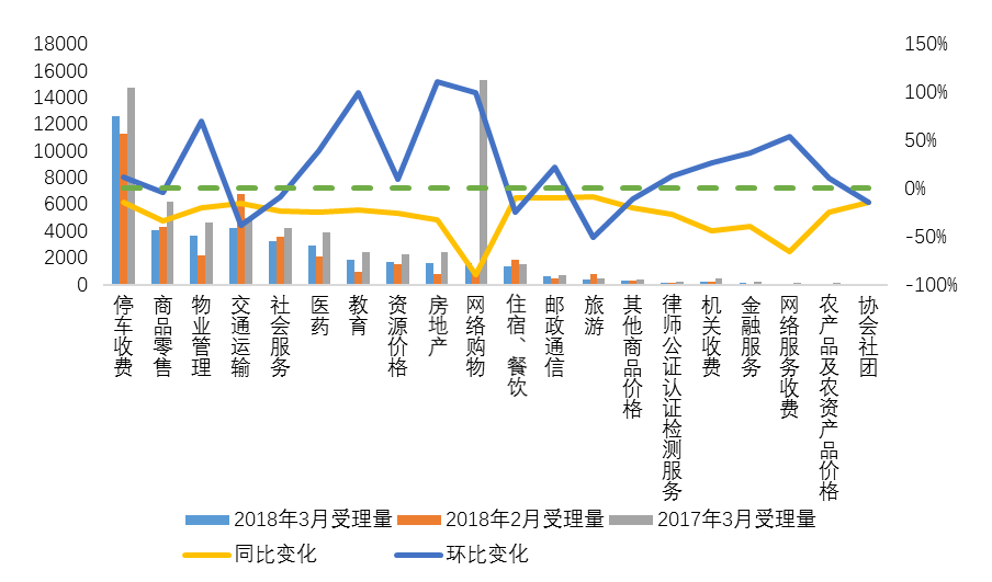 3月各行業(yè)受理同比、環(huán)比變化情況
