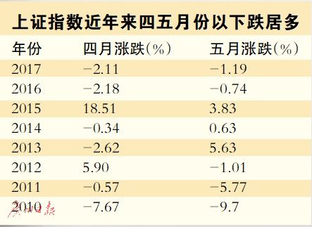 有券商從近5年的數(shù)據(jù)來分析發(fā)現(xiàn),A股市場每年的4月、5月行情多數(shù)出現(xiàn)回調(diào)。無論上證指數(shù)還是創(chuàng)業(yè)板指在4月和5月都跌多漲少,其中創(chuàng)業(yè)板指數(shù)波動幅度相對較大。
