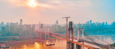 5月5日,世界最大跨度的自錨式懸索橋——重慶市鵝公巖軌道交通專用橋在長江上順利合龍。該橋全長1650米,其中主跨為600米的雙塔雙索面五跨連續(xù)鋼箱梁自錨式懸索,跨徑為同類型橋梁的世界之最?鐝降脑龃,對橋梁設(shè)計能力、高強度厚鋼板材料性能及其焊接工藝、施工能力、施工裝備等方面提出了更高要求。