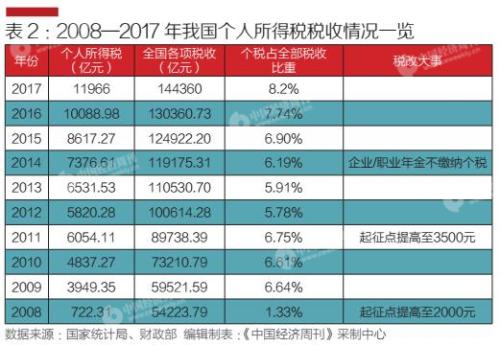 個(gè)人所得稅是目前我國(guó)僅次于增值稅、企業(yè)所得稅的第三大稅種,在籌集財(cái)政收入、調(diào)節(jié)收入分配方面發(fā)揮著重要作用。2017年全國(guó)個(gè)稅收入11966億元,占稅收總收入約8.3%。
