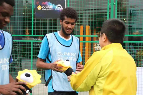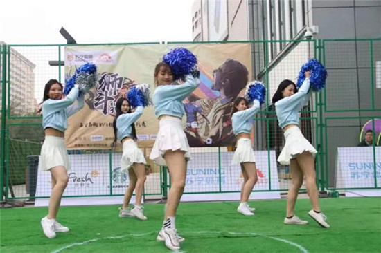中場休息,活力四射的足球?qū)氊悅優(yōu)樗袘?zhàn)獅加油助威,引爆整個(gè)蘇寧易購廣常