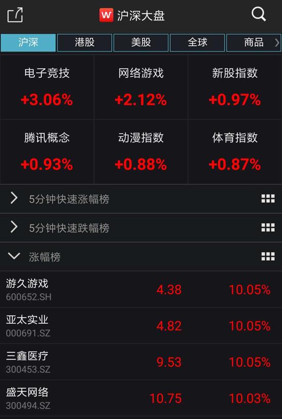 在消息發(fā)出后,游戲板塊集體爆發(fā)。從A股方面來看,截至周五(11月21日)收盤,在大盤整體低迷下跌0.79%的背景下,Wind電子競技指數(shù)和網(wǎng)絡(luò)游戲指數(shù)兩大概念板塊逆勢(shì)上攻,截至收盤分別上漲3.06%與2.12%,其中,游久游戲、盛天網(wǎng)絡(luò)、游族網(wǎng)絡(luò)、中青寶等漲停,完美世界上漲超6%,昆侖萬維上漲近3%。