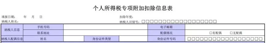 根據(jù)從網(wǎng)上下載的表格來(lái)看,在表頭項(xiàng)目中需要填寫填報(bào)日期,扣除年度等信息。其中,納稅人識(shí)別號(hào)是指身份證號(hào)碼,如果沒(méi)有身份證號(hào)碼的需填寫稅務(wù)機(jī)關(guān)賦予的納稅人識(shí)別號(hào)。