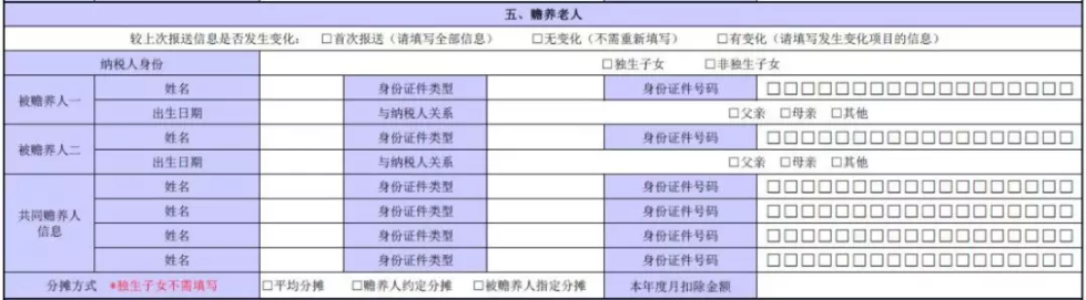 贍養(yǎng)老人一欄中,共同贍養(yǎng)人填寫時(shí)注意,納稅人為非獨(dú)生子女時(shí)填寫本欄,獨(dú)生子女無(wú)須填寫。