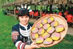 旅游扶貧使海南貧困黎鄉(xiāng)——小妹村脫貧致富。圖為小妹村的一名黎族姑娘展示黎族特色食品——三色飯。