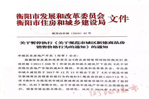 繼山東菏澤頂著壓力解除限售后,湖南衡陽大膽宣布取消限價(jià)。 衡陽樓市微信公眾號26日公布衡陽發(fā)改委和住建局聯(lián)合下發(fā)的一份文件,自2019年1月1日起暫停執(zhí)行此前……