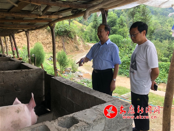 市婦幼保健院鐘院長到戶開展工作,查看貧困戶產(chǎn)業(yè)發(fā)展,幫助貧困戶銷售兩頭豬。