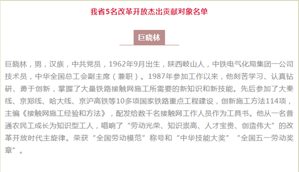 根據(jù)評選表彰工作部署,在各地區(qū)各部門反復(fù)比選、組織考察、集體研究提出推薦人選的基礎(chǔ)上,經(jīng)歸口評審、統(tǒng)籌考慮,產(chǎn)生了100名改革開放杰出貢獻(xiàn)擬表彰對象。其中我省5人入選,安康1人上榜。ewW安康新聞網(wǎng)