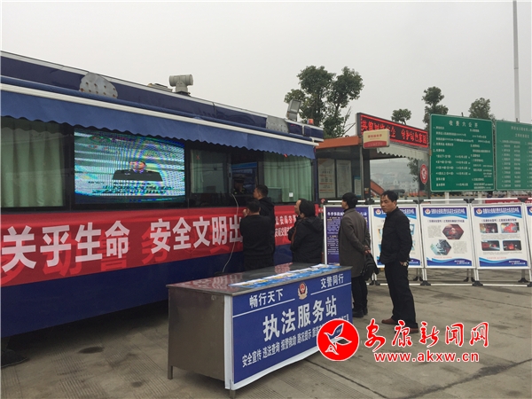 上午9時,在十天高速安康西執(zhí)勤點(diǎn),安康市公安局交警支隊副支隊長吳旬安、安康高交大隊副大隊長彭龍靜帶領(lǐng)民警開展交通安全宣傳活動和嚴(yán)查交通違法大曝光活動。