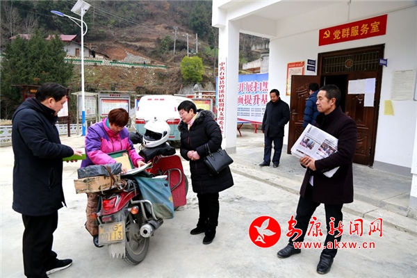 下午3點(diǎn)多走到聯(lián)盟村,趙明翠剛把報(bào)紙送到村上。村醫(yī)葉平菊就熱情地拉著趙明翠的手說:“山里好多群眾都搬到集中安置點(diǎn)安居了!村衛(wèi)生室都專門聘請的有醫(yī)生了!農(nóng)村婦女都能免費(fèi)體檢、免費(fèi)領(lǐng)取相關(guān)婦科藥品了!”趙明翠說:“這要感謝黨和國家的好政策!”