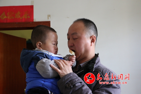 胡珂的小兒子赫赫沒人看管,只能寄放在鄰村的保姆家,周末胡珂來接孩子回安康和妻子、大兒子團(tuán)聚。記者 陳俊 攝
