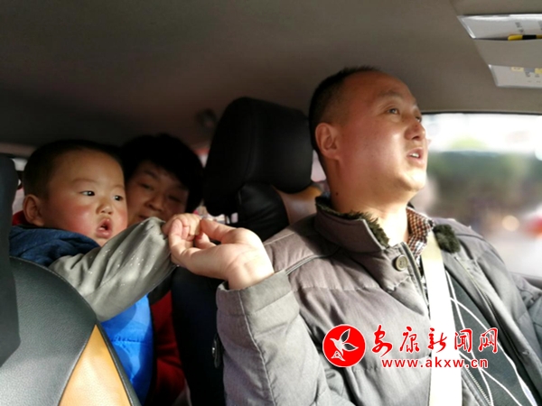 當(dāng)天,赫赫感冒有點(diǎn)不舒服。在回安康的路上,胡珂像之前孩子更小一些的時(shí)候,在他哭鬧時(shí)捏著孩子的小手安慰他。記者 陳俊 攝