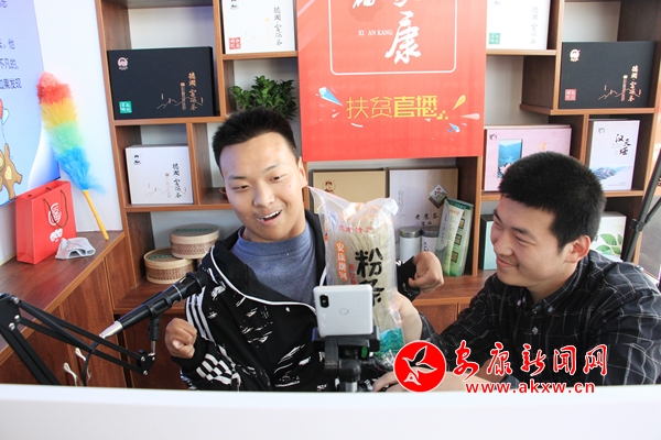 4月15日下午,記者一行來到漢濱區(qū)互聯(lián)網(wǎng)產(chǎn)業(yè)園時,殘疾青年孫陽正在映客直播平臺用詼諧幽默的語言和粉絲互動,介紹著蜂蜜、粉條等農(nóng)產(chǎn)品的優(yōu)勢。不久后,手機那頭的網(wǎng)友們紛紛下單,僅僅幾個小時成交了數(shù)單生意。
