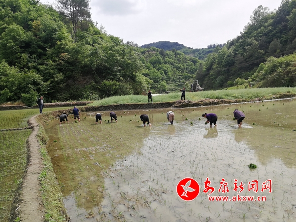 本網(wǎng)訊 (通訊員 高祥婷)近日,平利縣西河鎮(zhèn)女媧山村原生態(tài)水稻田內(nèi)呈現(xiàn)出一片熱鬧繁忙的夏栽場面:施肥平田、扯秧運苗、拉線定距,田間的稻農(nóng)們挽著褲腳,彎腰在水田里進(jìn)行人工插秧……中心片區(qū)的插秧工作基本完成,放眼望去,嫩綠的秧苗,一行行排列整齊,錯落有致,為水田披上一襲綠色的新裝。