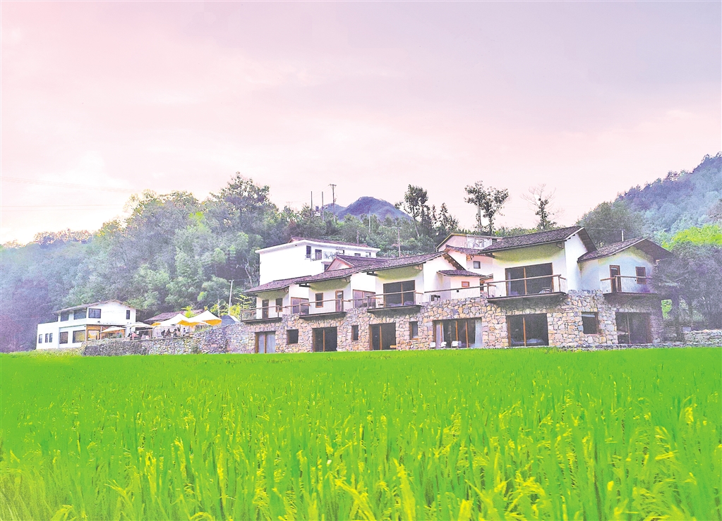 8月7日傍晚,在寧陜縣城關(guān)鎮(zhèn)漁灣逸谷田園綜合體,自然美景與現(xiàn)代化民宿相得益彰,構(gòu)成了一道亮麗的風(fēng)景線。 王輝 攝