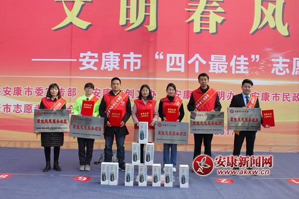 安康新聞網(wǎng)訊(通訊員 王靜)3月3日,春風(fēng)和煦。在安康市中心廣場上,身穿紅色、綠色、藍(lán)色小馬甲的志愿者們?yōu)椤拔拿鞔猴L(fēng)行動暨安康市‘四個(gè)最佳’志……