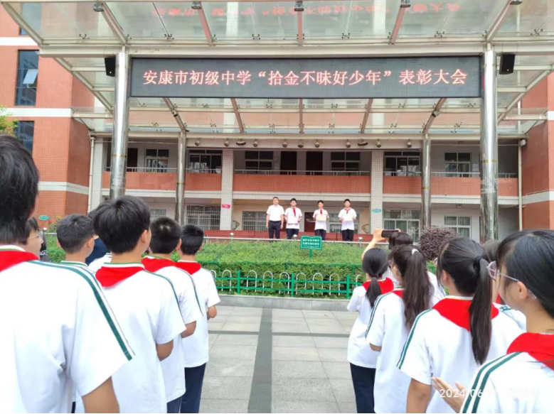 6月17日上午,安康市初級中學(xué)舉行了一場表彰大會。表彰我校初一四班景永強、汪正男、馬崇偉三位同學(xué)拾金不昧的行為,并為其頒發(fā)獎狀,引導(dǎo)全校師生學(xué)習(xí)這種拾金不昧的優(yōu)良品質(zhì),將傳統(tǒng)美德內(nèi)化于心,外化于行。