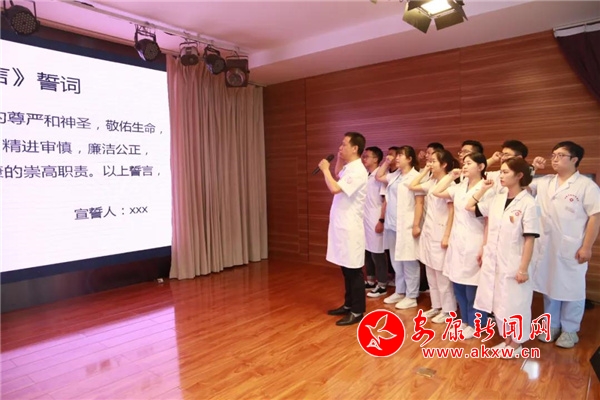 “我莊嚴宣誓,自覺維護醫(yī)學的尊嚴和神圣,敬佑生命,平等仁愛,患者至上......”鏗鏘有力的宣誓回蕩在六樓會議室大廳。重溫“醫(yī)師誓言”,捍衛(wèi)醫(yī)者初心,牢記使命擔當。醫(yī)護人員紛紛表示今后將發(fā)揚好婦幼精神,完善自我,奮力前行。