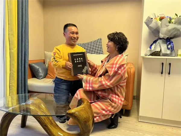 立冬這天,富華裝飾公司的周靜云、張培等人把王庭德迎進溫暖的新居,向他移交了裝飾溫馨的新房。王庭德為了感恩,向富華裝飾公司贈送了“關(guān)愛有致,親如家人“的匾牌。