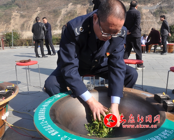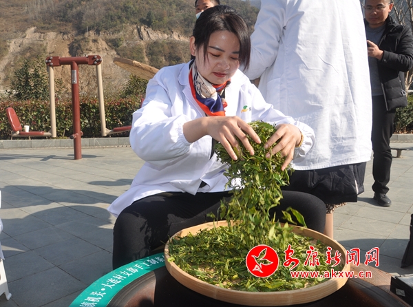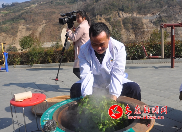 活動(dòng)中,殺青、揉捻、定型,鮮嫩的茶葉在黨員干部手掌和鍋中上下翻騰,左右揉搓。經(jīng)過(guò)近兩個(gè)小時(shí)的耐心制作,成品紫陽(yáng)綠茶新鮮出鍋,空氣中散發(fā)出濃濃茶香。
