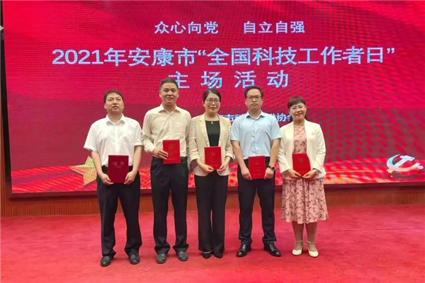 醫(yī)院優(yōu)秀科研人才在2021年安康市“全國(guó)科技工作者日”主場(chǎng)活動(dòng)領(lǐng)獎(jiǎng)