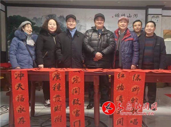本網(wǎng)訊(通訊員 田虹)瑞雪紛飛,臘月尤寒。自1月20日至26日,安康市延安精神研究會組織部分會員采取集寫分送或分寫集送的方式,先后為安康市亦合安企業(yè)管理有限公司、平利縣新立人力資源管理公司、嵐皋縣瀛湖漢源漁業(yè)公司等會員單位及職工,神河鎮(zhèn)敬老院及街道社區(qū)群眾送春聯(lián)送溫暖。一幅幅鮮紅的楹聯(lián)為即將來臨的虎年春節(jié)增添了濃濃暖意。
