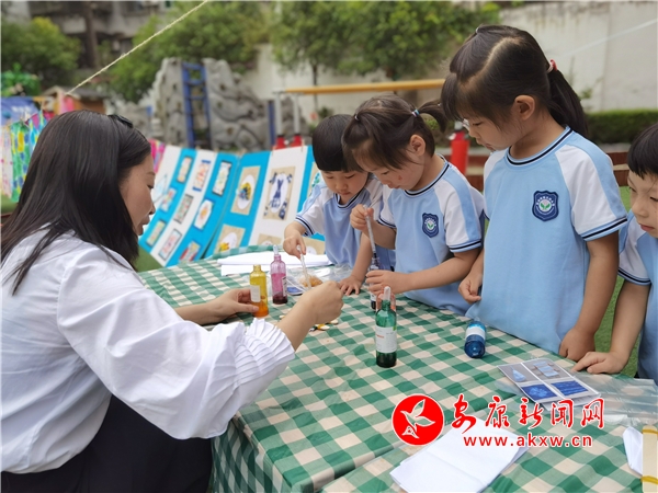 活動現(xiàn)場,除了孩子親手制作的美食,還有眾多有趣的傳統(tǒng)民間游戲。在民間藝術(shù)體驗區(qū),小朋友們進行了傳統(tǒng)扎染、趣味剪紙、泥塑、陶藝活動體驗;在皮影小劇場,大班孩子們自導自演的皮影戲也在熱火開播。在輕松、愉悅的節(jié)日氛圍中孩子們體驗傳統(tǒng)文化的多彩,感受自主游戲的快樂,也激發(fā)了幼兒對優(yōu)秀傳統(tǒng)文化的興趣,萌發(fā)了民族自豪感。