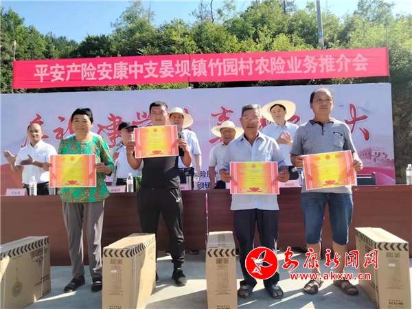會議還進行了捐贈和頒獎儀式,平安財險公司向四名村干部贈送保單,為在村茶葉合作社常年務工人員集中免費辦理保險。同時,參會領(lǐng)導向村級道德模范頒發(fā)獎狀獎品。