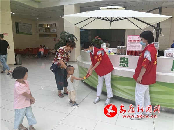 便民舉措送清涼。為更好地服務就醫(yī)群眾,醫(yī)院開展志愿者服務活動,為服務對象提供遮陽、送清涼、門診延伸、道路引導、就診咨詢等志愿服務。在門診大廳為前來就診的患者及陪同人員免費提供降溫飲品。該院的相關負責人說:“天氣炎熱,患者和家屬遠路趕來,容易產(chǎn)生急躁情緒,我們更應該把服務做得精細一些,有利于醫(yī)患溝通,也有利于為患者更好地服務。當我們把飲品送到患者及家屬手中時,不僅捎去了夏日的清涼,還幫助其緩解焦慮的心情”。