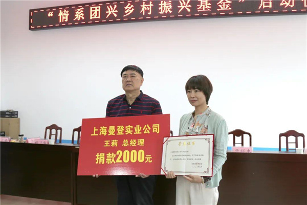 今年5月31日上午,上海曼登實(shí)業(yè)有限公司董事長于登玉一行來到旬陽市小河鎮(zhèn)留守兒童關(guān)護(hù)中心,為資助“設(shè)施更新項(xiàng)目”捐款5萬元。