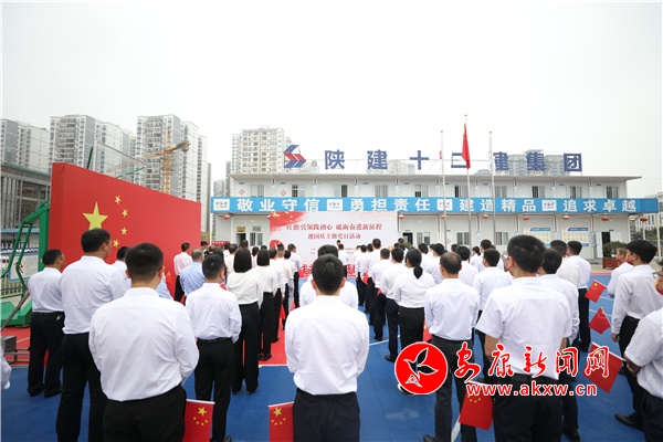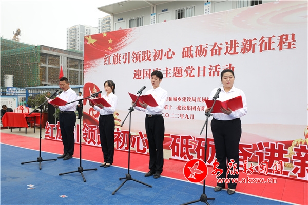 上午9時,活動在莊嚴的升旗儀式中拉開序幕,伴隨著《義勇軍進行曲》慷慨激昂的旋律,鮮艷的五星紅旗冉冉升起。在場全體人員面向國旗行注目禮,齊唱國歌,共同祝福偉大祖國更加繁榮昌盛。升旗儀式結束后,在活動現(xiàn)場,開展了紅色朗誦《我的祖國》,市住建局向陜建十二建集團捐贈“紅色”書籍。同時,市住建局工作人員進行了《建設工程項目管理規(guī)范》《建筑施工現(xiàn)場環(huán)境與衛(wèi)生標準》《 建筑施工高處作業(yè)安全技術規(guī)范》等城市建設及建筑行業(yè)規(guī)范宣講;顒幼詈,全體人員合唱《我和我的祖國》,激昂的歌聲將活動推向了高潮。