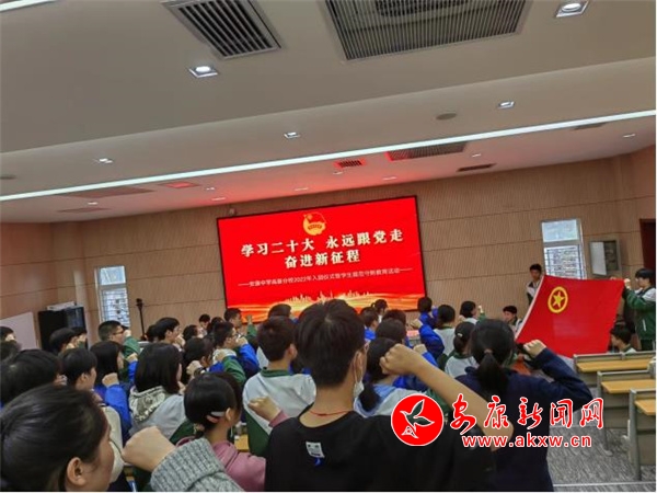 本網(wǎng)訊(通訊員 劉玉俊)10月20日,安康中學(xué)高新分校團(tuán)委舉行了“學(xué)習(xí)二十大 永遠(yuǎn)跟黨走 奮進(jìn)新征程”2022年新團(tuán)員入團(tuán)儀式暨學(xué)生規(guī)范守則教育活動,旨在以入團(tuán)儀式的形式開展具象化、分眾化規(guī)范守則教育活動,引導(dǎo)廣大團(tuán)員青年弘揚(yáng)愛國主義精神,傳承紅色基因,增強(qiáng)責(zé)任感和使命感。學(xué)校黨支部副書記、團(tuán)委書記、各班團(tuán)支書和團(tuán)員代表參加。