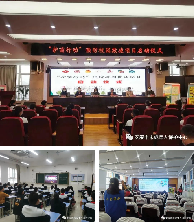 在深入學(xué)習(xí)黨的二十大精神,全面提升社會主義精神文明,全市人民奮力創(chuàng)建全國文明城市工作的熱烈氛圍下,為進(jìn)一步深化“護苗行動”的開展,營造安全、文明、和諧的育人環(huán)境,培養(yǎng)學(xué)生基本法律意識,幫助他們樹立守法觀念,增強自我保護意識,讓學(xué)生懂得運用法律的武器來保護自己。11月9日上午,安康市未成年人保護中心受邀前往漢濱區(qū)城東小學(xué)參加“護苗行動”預(yù)防校園欺凌項目啟動儀式。該項目資金由山溪行動——陜西省婦兒公益網(wǎng)絡(luò)建設(shè)項目提供,安康市關(guān)心下一代工作委員會、安康市中級人民法院、安康市婦女聯(lián)合會、安康市政府婦兒工委辦、共青團安康市委、安康市未成年人保護中心協(xié)助,安康艾德社會工作服務(wù)中心執(zhí)行實施,這是我市第一次系統(tǒng)性引入預(yù)防校園欺凌知識體系,項目啟動儀式以直播的形式向漢濱區(qū)城東小學(xué)1500余名師生進(jìn)行轉(zhuǎn)播。
