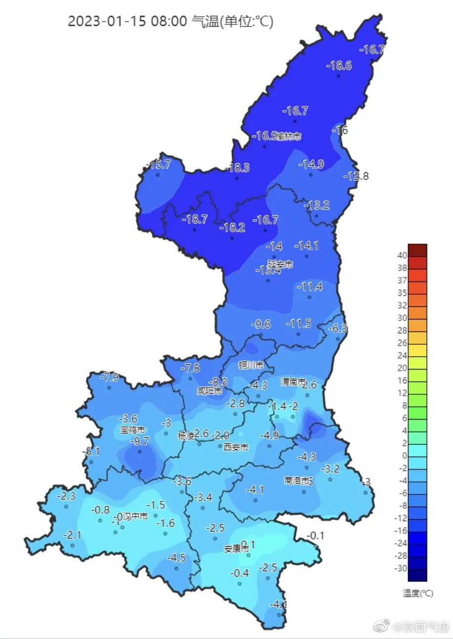 陜西省氣象臺2023年1月15日8時00分解除寒潮藍色預警:目前冷空氣影響已減弱,故解除寒潮藍色預警。