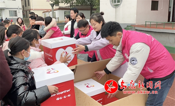 “這里面是新衣服、新鞋!”“哇,足球、跳繩,感謝叔叔阿姨!”操場(chǎng)上,孩子們迫不及待地打開(kāi)暖流包、體育包禮盒,隨后,紅彤彤的臉上綻放出燦爛笑容。